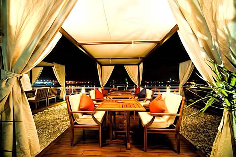 After a long day of sightseeing and exploration, it is time to sit back and relax while sipping your favorite drink. A contemporary atmosphere that stands in stark contrast to the surroundings and a mood specifically designed to enhance your level of comfort and serenity. You can dance on our oriental beats, watch the slow of the night or simply feast your eyes on the breathtaking view of the Nile.